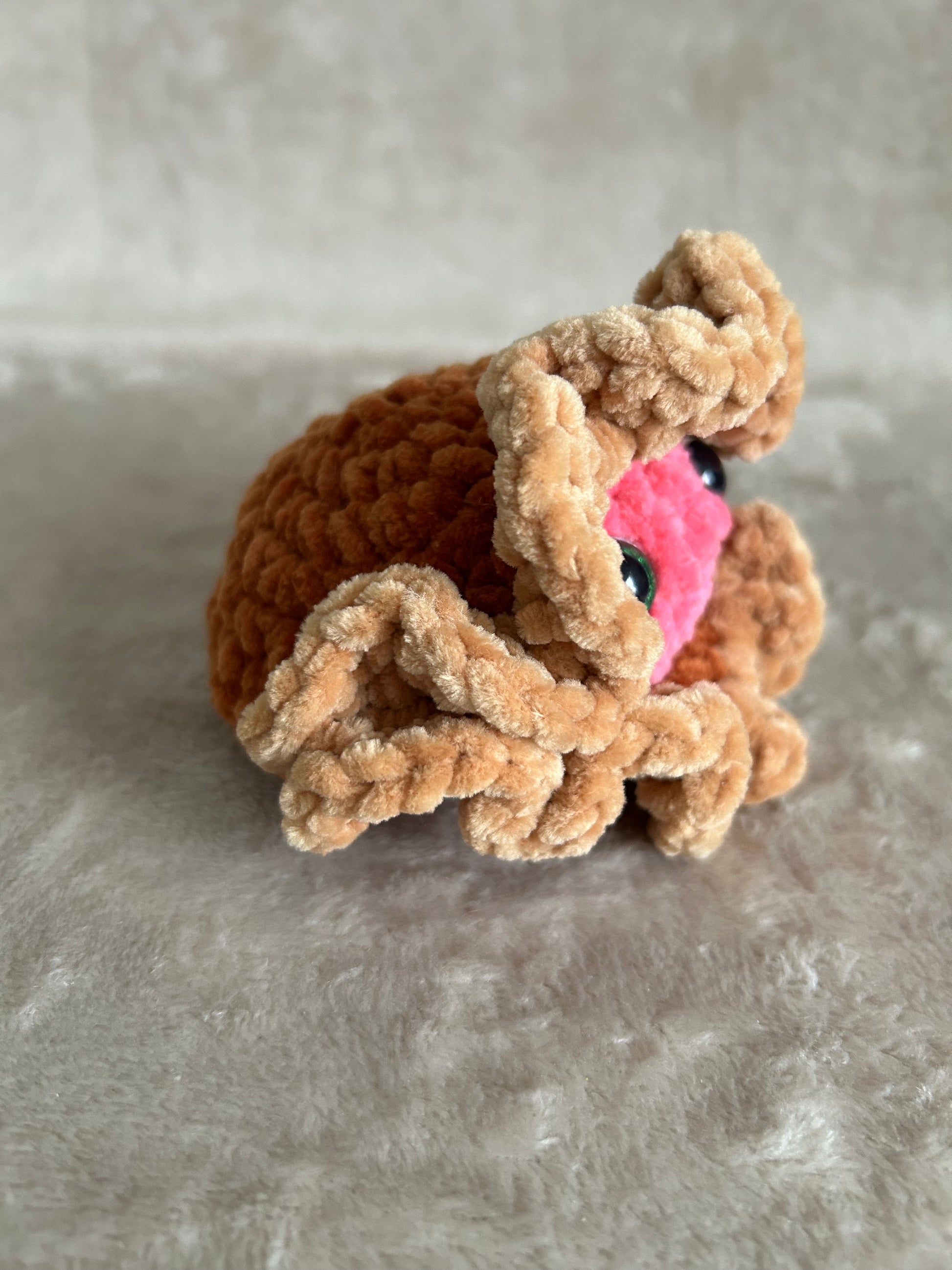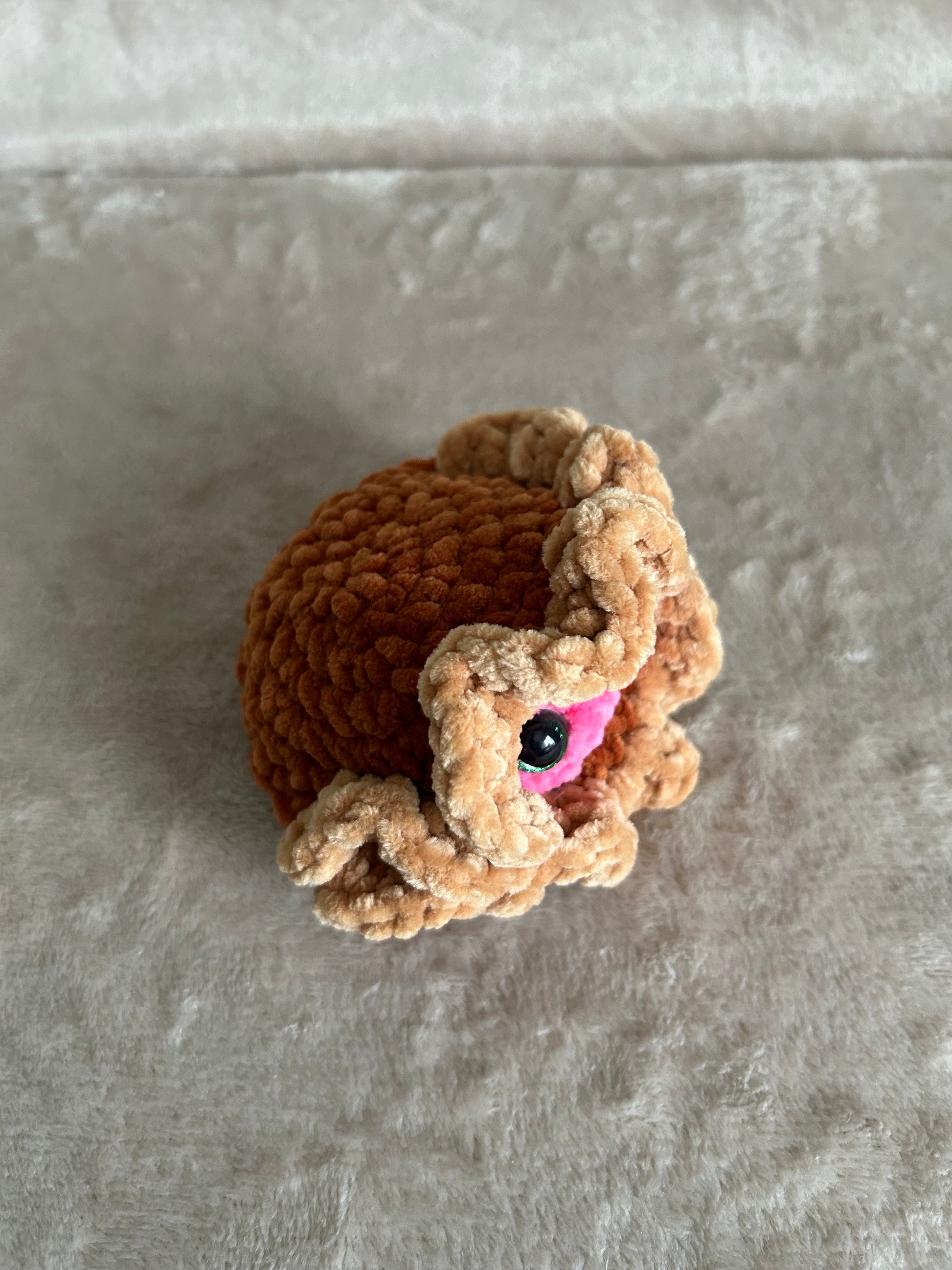 Detta virkade ostron har säkerhetsögon (safety eyes). Trots att ögonen är limmade på insidan för extra säkerhet, finns det alltid en risk att de kan lossna. Små delar kan innebära kvävningsrisk.