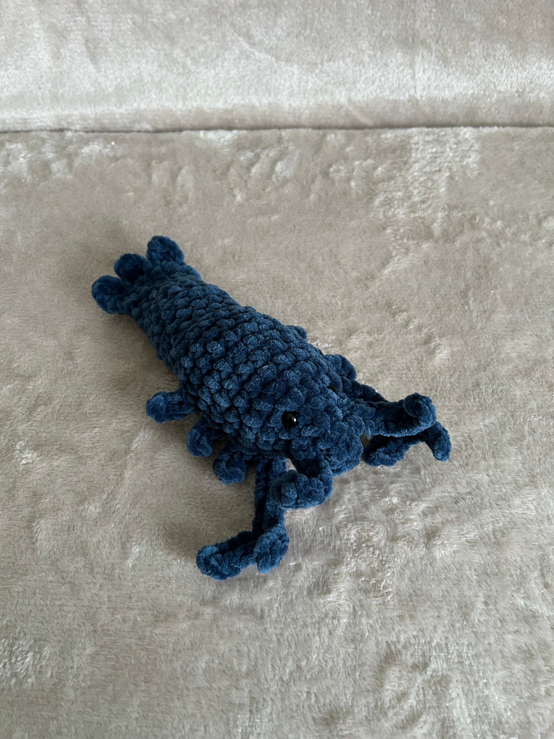 Vem har sagt att humrar måste vara hårda och röda? Möt vår unika blå hummer, virkad i det mjukaste sammetsgarnet du kan tänka dig. Med sina snälla ögon och sina gosiga klor är han redo att flytta in i barnrummet (eller varför inte i soffan hos en vuxen som älskar havet?). Hugo nyps aldrig, han ger bara de allra mjukaste kramarna.